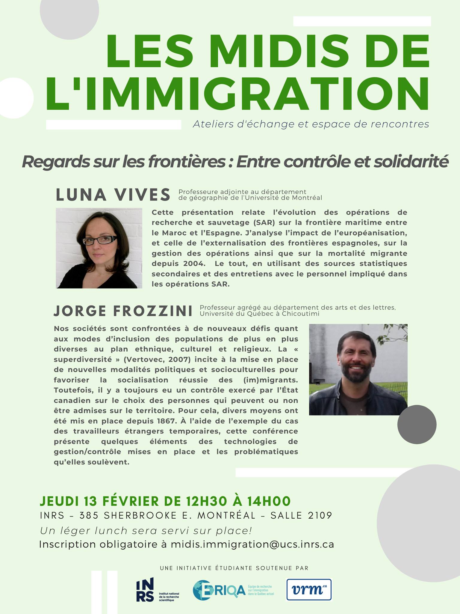 Jorge Frozzini, chercheur régulier au LABRRI, participera au prochain MIDI de l’immigration. Sa présentation « Travailleurs étrangers temporaires et l’État canadien : technologies de contrôle et vulnérabilité » s’inscrit dans le thème de l’atelier « Regards sur les frontières: Entre contrôle et solidarité ». Les Midis de l’Immigration sont des ateliers d’échange et de rencontre qui mettent de l’avant les récentes recherches sur les migrations internationales, le transnationalisme, l’accueil et l’établissement des personnes issues de l’immigration.