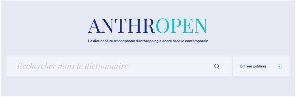 Anthropen est un dictionnaire d’anthropologie en libre accès, ancré dans le contexte des sociétés contemporaines. Des spécialistes internationaux, provenant de différents horizons intellectuels, disciplinaires et interdisciplinaires, sont invités à collaborer à la production de ce dictionnaire évolutif et dynamique entre autres par la rédaction d’entrées contributives au lexique actuel de l’anthropologie, des sciences sociales et des sciences de la culture.