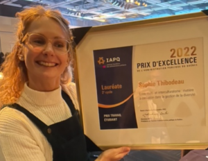 Sophie Thibodeau, étudiante du LABRRI, reçoit le prix d’excellence de l’administration publique de l’Institut d’administration publique du Québec grâce à son travail intitulé: Entre multi- et interculturalisme : matière à confusion dans la « gestion de la diversité ».