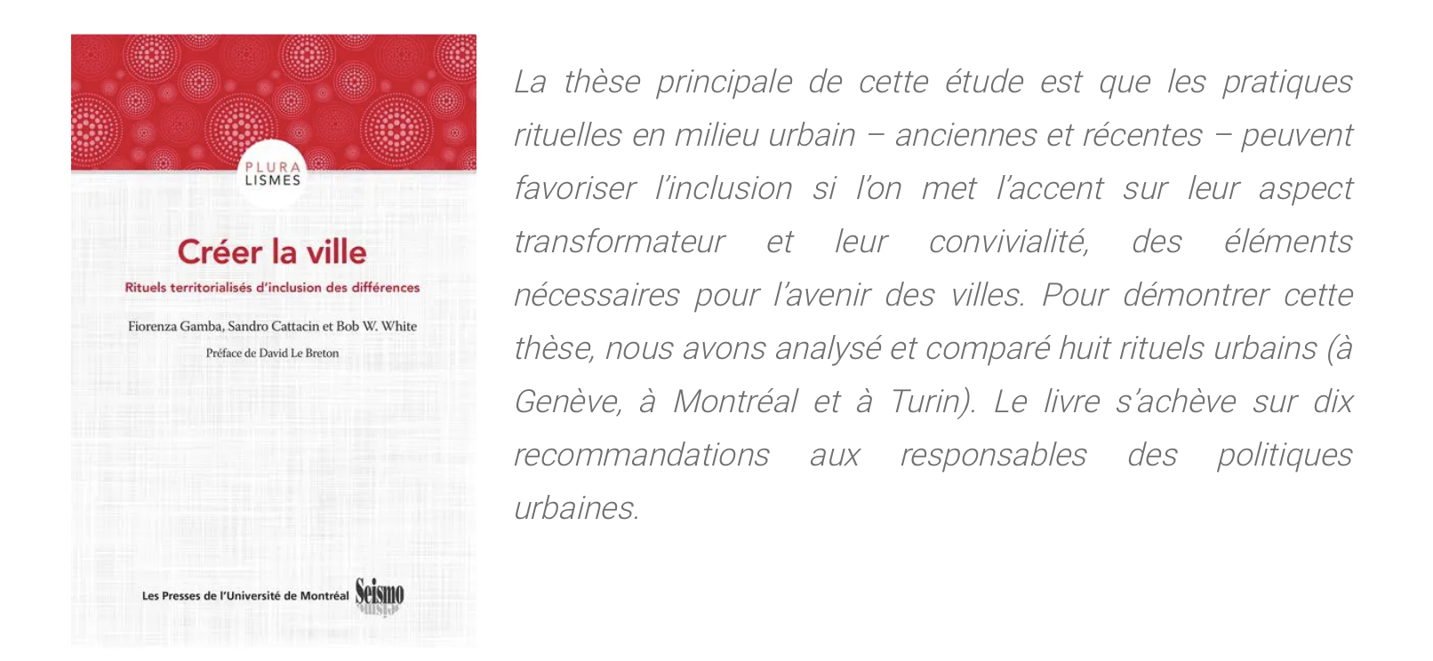 Le fichier pdf du texte intégral est disponible en accès libre sur :  https://www.pum.umontreal.ca/catalogue/creer_la_ville