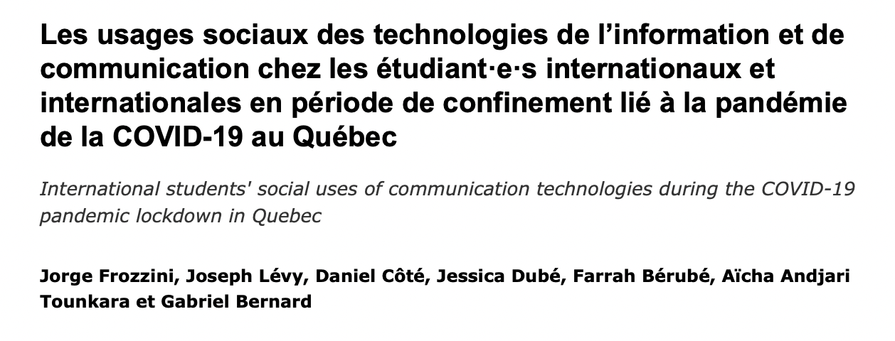Il fait partie d’une série de publications dont la prochaine doit paraître bientôt. Issus d’une recherche dirigée par Jorge Frozzini (CRSH engagement partenarial), l’ensemble des articles aident à combler un vide dans la littérature à propos de la période du confinement et ses effets sur les étudiantes et étudiants internationaux.