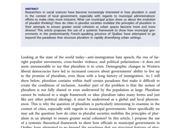 LIRE«The Paradox of Pluralism: Municipal Integration Policy in Quebec»: Nouvel article de Bob White