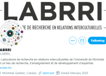 Le LABRRI est maintenant sur Twitter. Pour être au courant de nos activités et suivre l'actualité interculturelle, suivez-nous ! Tweets by LABRRI_