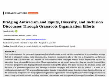 Pascale Caidor signe un article dans la revue Diversity & Inclusion Research intitulé : “Bridging Antiracism and Equity, Diversity, and Inclusion Discourses Through Grassroots Organization...